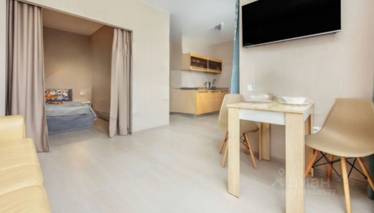 Просторная однокомнатная квартира студия с совмещённой кухней и гостиной. Спальная комната зонирована шторами. В квартире сделан ремонт по дизайн проекту. Расположение квартиры во двор с видом на горы, что позволяет избежать палящего солнца в окна в течение дня. Очень комфортный третий этаж позволит вам не тратить время на ожидание лифта. Квартира оснащена всем необходимым: диван-кровать, двуспальная кровать, обеденный стол, кухонный гарнитур. Смарт телевизор, холодильник, кондиционер, индукционная плита, микроволновка, пылесос, утюг, фен, водонагреватель будут помощниками в быту. Вместительный шкаф с зеркалом в прихожей и шкаф в спальной комнате. Постельное бельё и полотенца. Совмещённый санузел оборудован ванной. На случай отключения горячей воды имеется настенный водонагреватель. Квартира сдаётся на длительный срок с повышением в летние месяцы на 5000 рублей.
