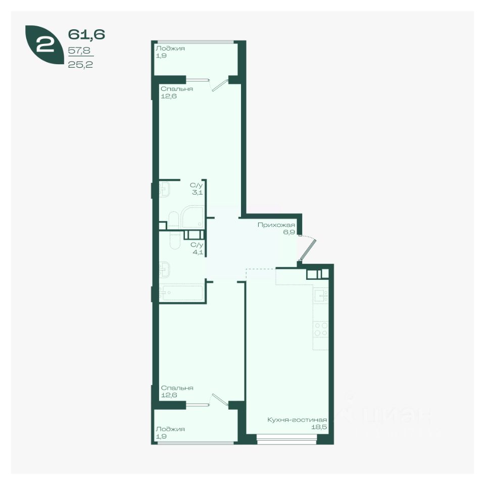 продам 2-к, Душистая, 2/18 870 400 ₽