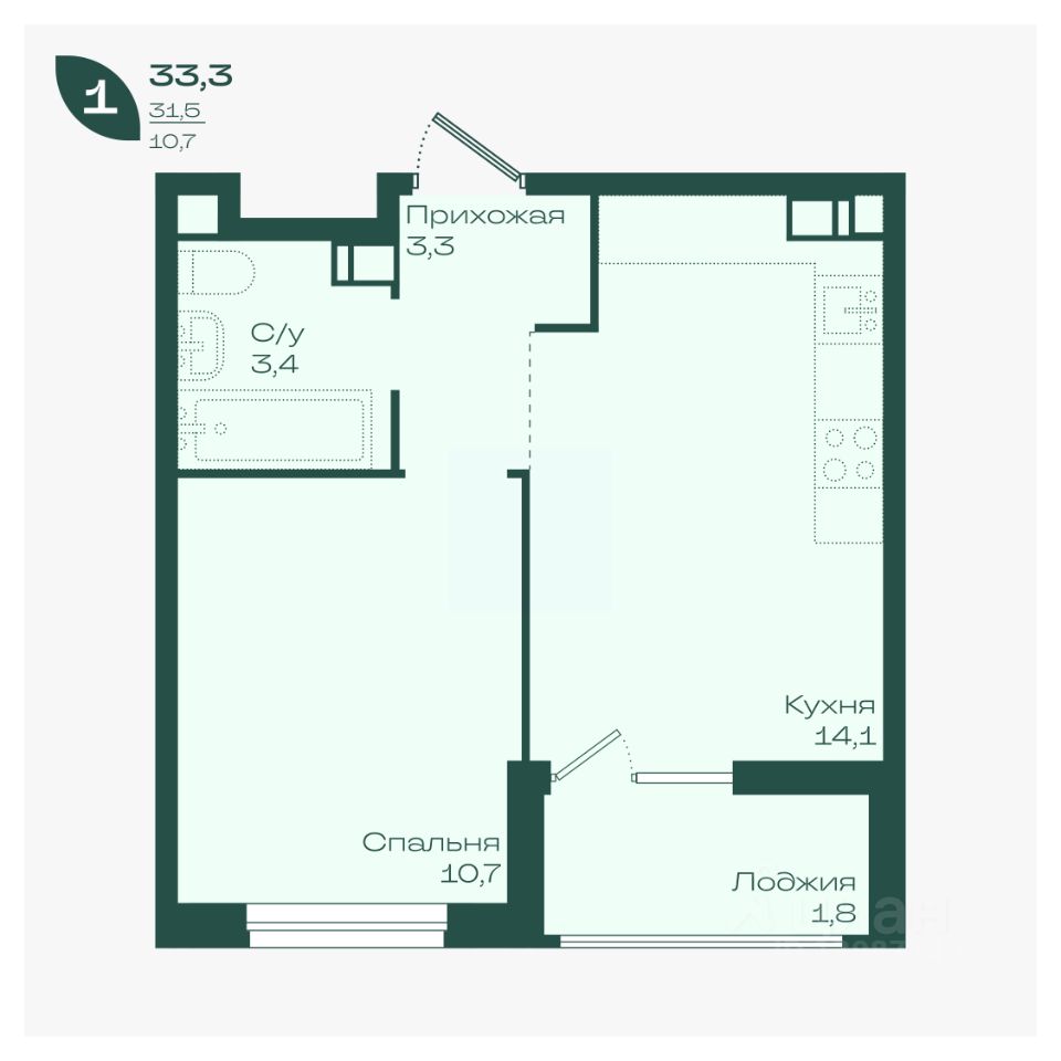 продам 1-к, Душистая, 2/15 394 600 ₽