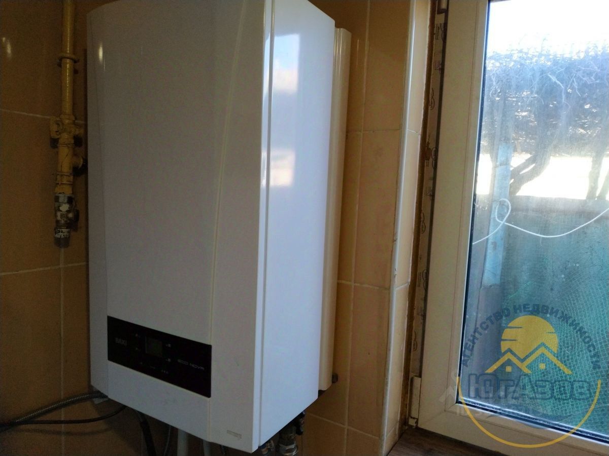 Дом построен из блока, есть газ, электричество, вода, газовый котел.