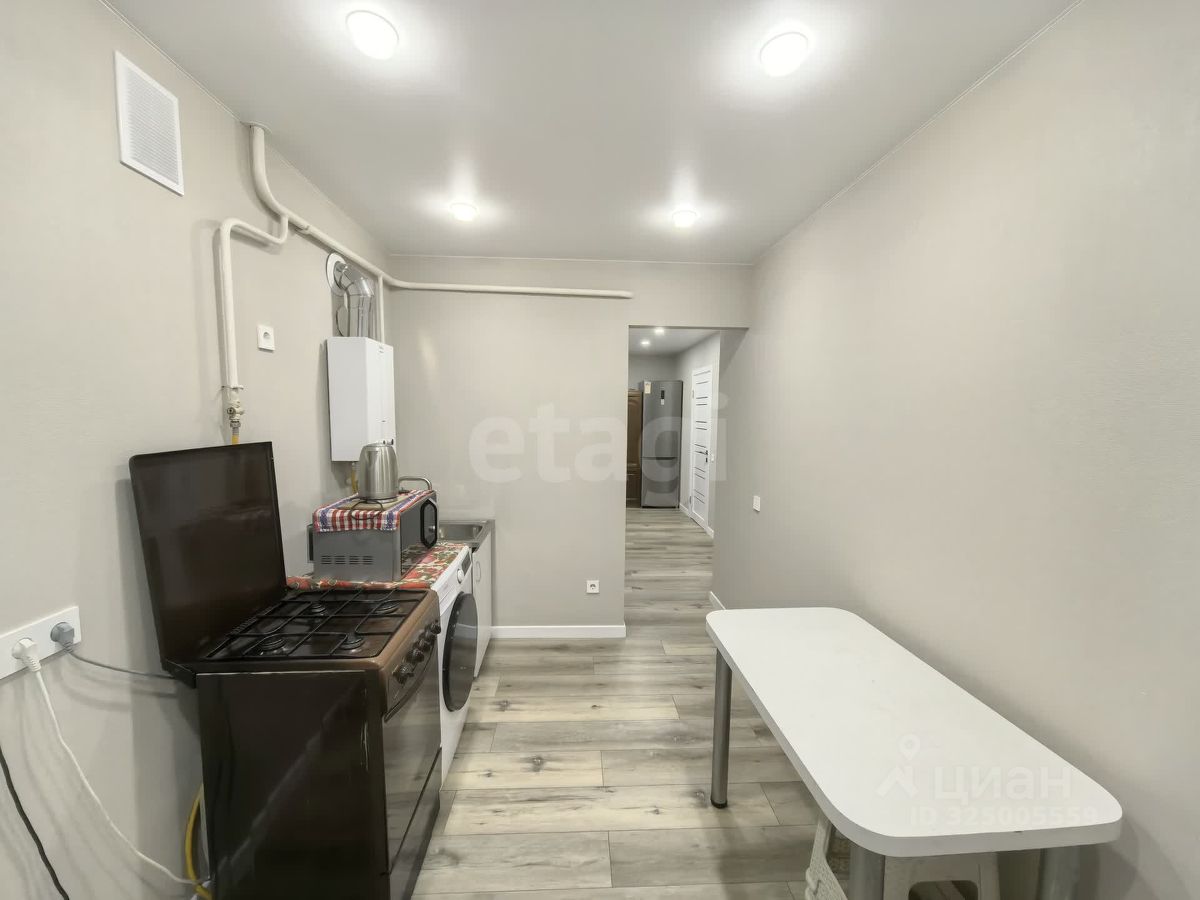 Общая площадь 43 м2, жилые комнаты: 11,1 м2, 8,6 м2, коридор 8.3 м2, кухня 8 м2, санузел раздельный. В квартире выполнен капитальный ремонт, произведена замена электропроводки, труб канализации и водоснабжения, установлены металлопластиковые окна. Есть лоджия 6 кв.м с сухим подвалом для хранения консервации. Так же в подвале дома есть помещение 18 кв.м, закрепленное за квартирой для хранения личных вещей. Под окнами квартиры есть земельный участок с фруктовым садом.
