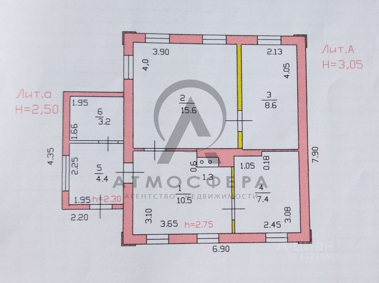 Общая площадь54,5 м2