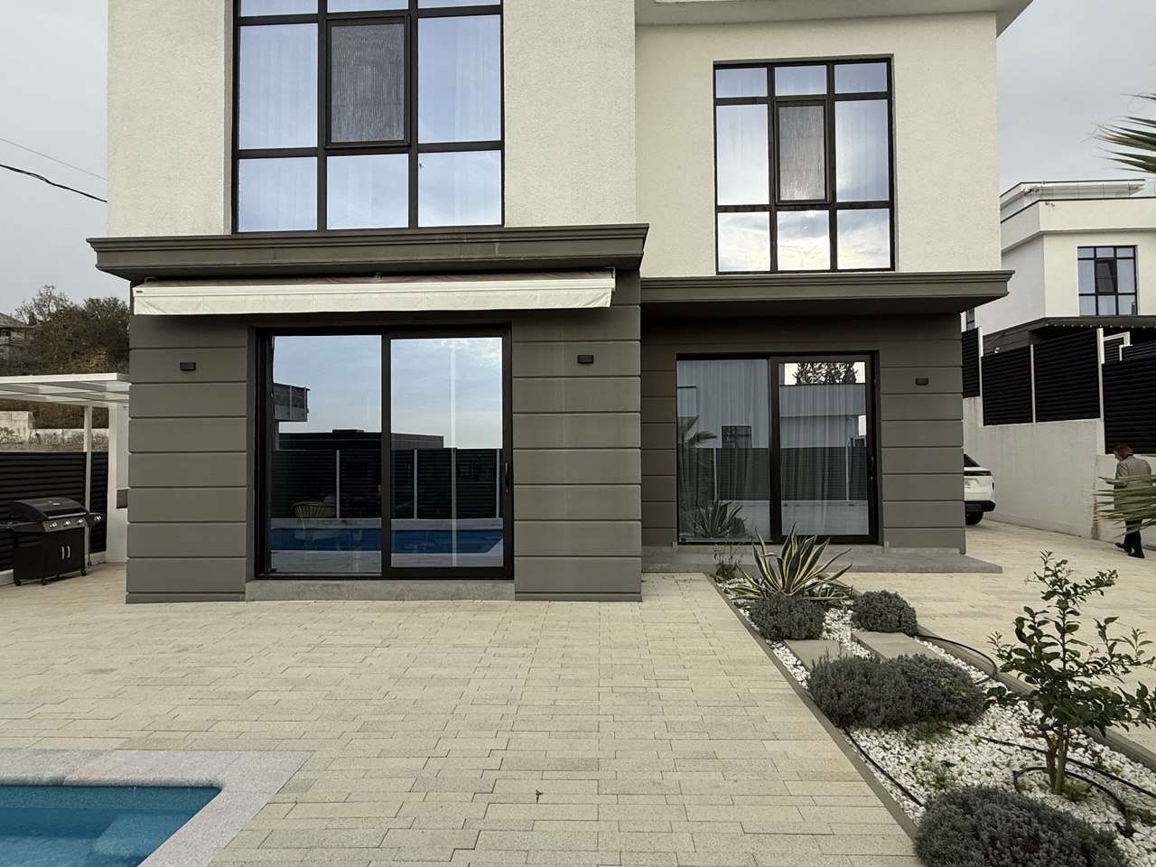 Продается стильный трёхэтажный дом площадью 160 кв.м и эксплуатируемой кровлей в охраняемом коттеджном поселке. Дом полностью с современным ремонтом — можно заезжать и жить.