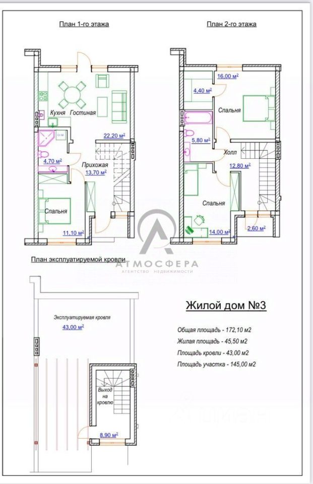 В указанную стоимость включено: • Таунхаус, общей площадью 172,10 кв.м. (в том числе терраса на эксплуатируемой кровле 43,00 кв.м.), • Продуманная планировка просторная гостиная-кухня, 3 светлые спальни, гардеробная и 2 санузла, • Предчистовая отделка оштукатуренные стены, стяжка пола с прокладкой отопления, • Энергосберегающие стеклопакеты Rehau, • Высококачественные входные двери, • Смонтированная система отопления, с газовым котлом Bosch и радиаторами отопления Buderus с терморегуляторами, и теплым полом, • Подготовка дренажей под установку системы кондиционирования воздуха, • Смонтированные коммуникации для слаботочных систем (домофон, видеонаблюдение, интернет), • Эксплуатируемая кровля, с финишным покрытием пола и ограждением, • Внутренние лестницы из монолитного железобетона, • Сетевые коммуникации скрытого подключения, с приборами учёта, • Подготовка к разводке и частичная разводка внутридомовых электрических сетей, • Отдельная входная группа, с собственным въездом на придомовой участок, • Земельный участок 145 кв.м., • Ворота с автоматическим приводом и калиткой, • Парковочное место площадка открытого типа, • Благоустройство внутренней территории тротуарной плиткой, зеленые зоны с газоном и деревьями, • Зона отдыха барбекю на заднем дворе, • Подготовка для монтажа системы резервного электропитания, • Современные ограждения деревянно-металлическая конструкция с кирпичными вставками, • Благоустройство прилегающей территории: асфальтированная дорога и подъезды, пешеходные зоны вымощены тротуарной плиткой, зеленые зоны с газоном и деревьями. • Архитектурно-художественное фасадное освещение,
