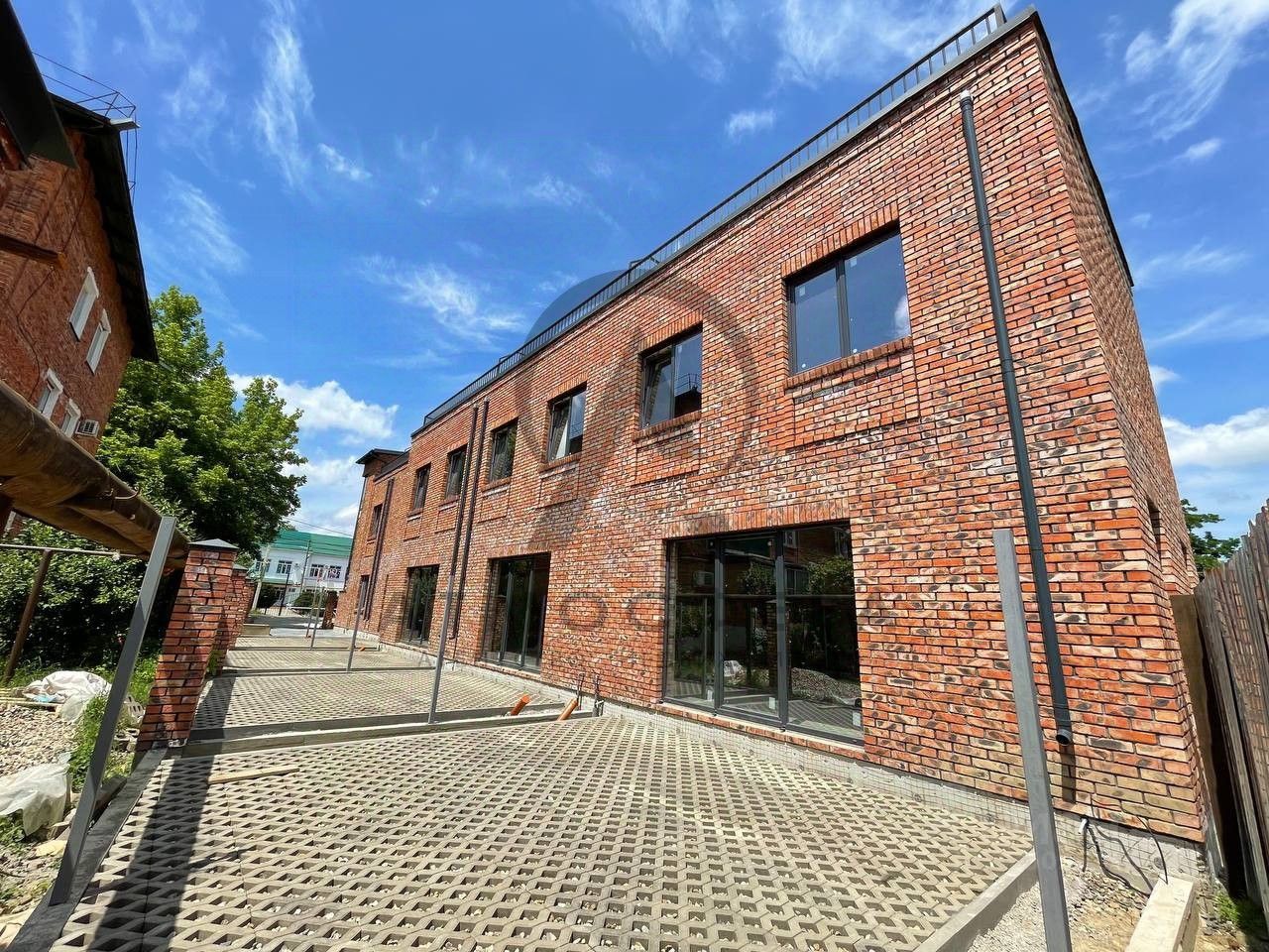 Многоуровневый жилой дом премиального класса, с панорамными окнами и плоской эксплуатируемой кровлей, в комфортном и тихом районе Краснодарского края города Хадыженска, в 120 км. от Краснодара и 70 км. от Чёрного моря. Для достижения высоких показателей качества применялись смешанные технологии и сертифицированные, высококачественные строительные и отделочные материалы, таких производителей как ''Технониколь'', ''Пеноплэкс'', ''Docke'', ''LANXESS'', ''Северсталь'', ''Абинский Электрометаллургический завод'', ''Новоросцемент'', ''Knauf'', ''FAR'', ''VALTEC'', ''MVI'', ''Elcon'', ''Главстройблок'', ''Петровский Кирпичный Завод'' и т.д. На каждом этапе строительства осуществлялся авторский надзор и фотовидеофиксация. В конструктиве дома применялся: бетон М300-350, арматура 12-14 А500С. В строительный несущий конструктив входит: ленточный фундамент, плита, кирпич М175, газоблок D500, колонны (сердечники), перемычки, армопояс, пустотные железобетонные перекрытия. Все монолитные элементы имеют дополнительное утепление и гидроизоляцию. Наружные стены более 400 мм., из газобетонных блоков, с высокими теплозащитными свойствами, обложенные облицовочным кирпичом высшей марки, в старинном английском стиле. Высококачественные входные двери. Энергосберегающие стеклопакеты Rehau с качественной немецкой фурнитурой. Высота потолков 3 метра. Большие панорамные окна и эксплуатируемая кровля придают таунхаусу уникальные видовые характеристики. Отсутствие внутренних несущих перегородок позволяет произвести перепланировку по своему усмотрению. Предчистовая отделка даёт возможность реализовать ваши самые смелые идеи и желания в дизайне интерьера.