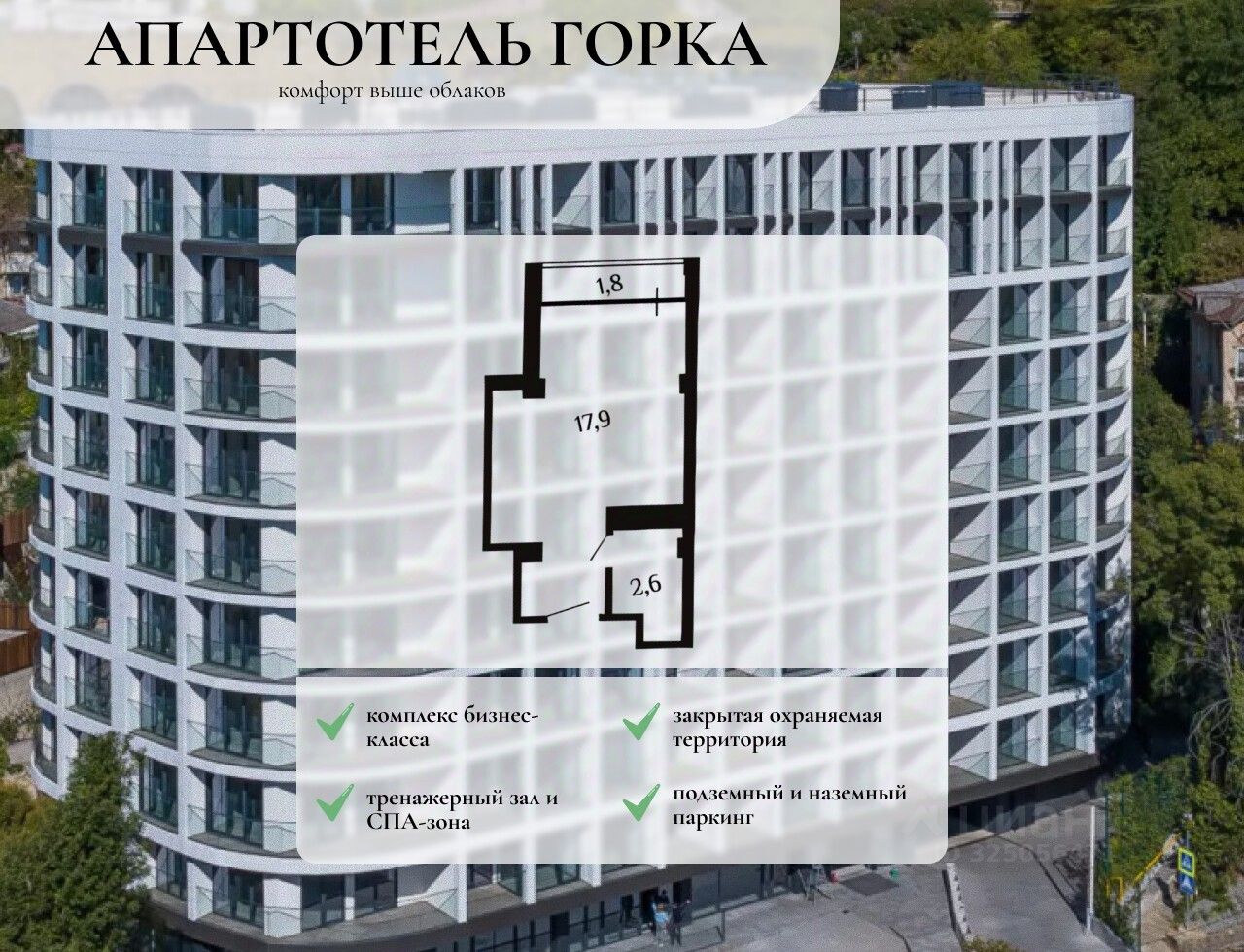 AK ''Горка'' (апарт-комплекс Горка) — это комплекс бизнес-класса, со своей закрытой и охраняемой территорией, ландшафтным озеленением, подземным и надземным паркингом, кафе-рестораном, тренажерным залом со СПА-зоной. Комплекс расположен на ул. Шоссейная в тихом и уютном микрорайоне ''Хоста'', который является санаторно-курортной зоной.