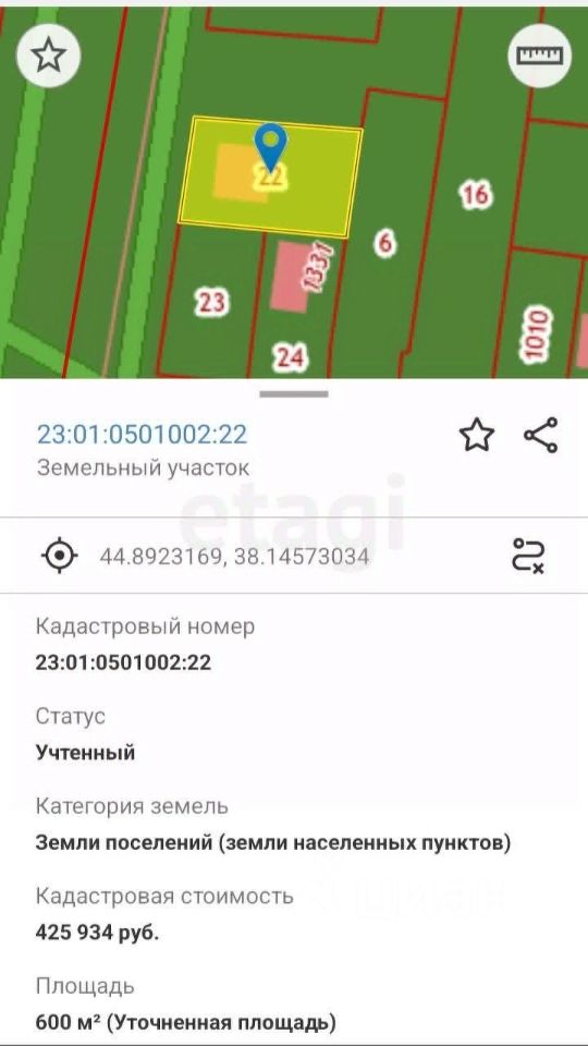 Площадь участка6 соток