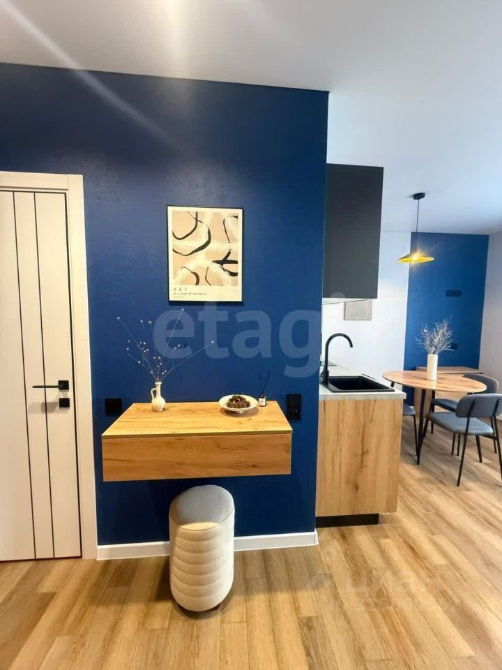 Выполнен качественный ремонт в стиле финского минимализма с использованием долговечных материалов: декоративная штукатурка на стенах, натяжные потолки со скрытой подсветкой, практичный кварцвинил на полу по всей площади, включая лоджию и санузел.