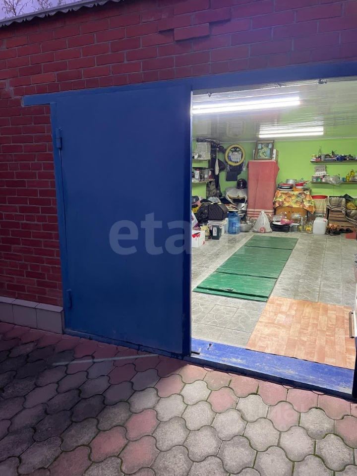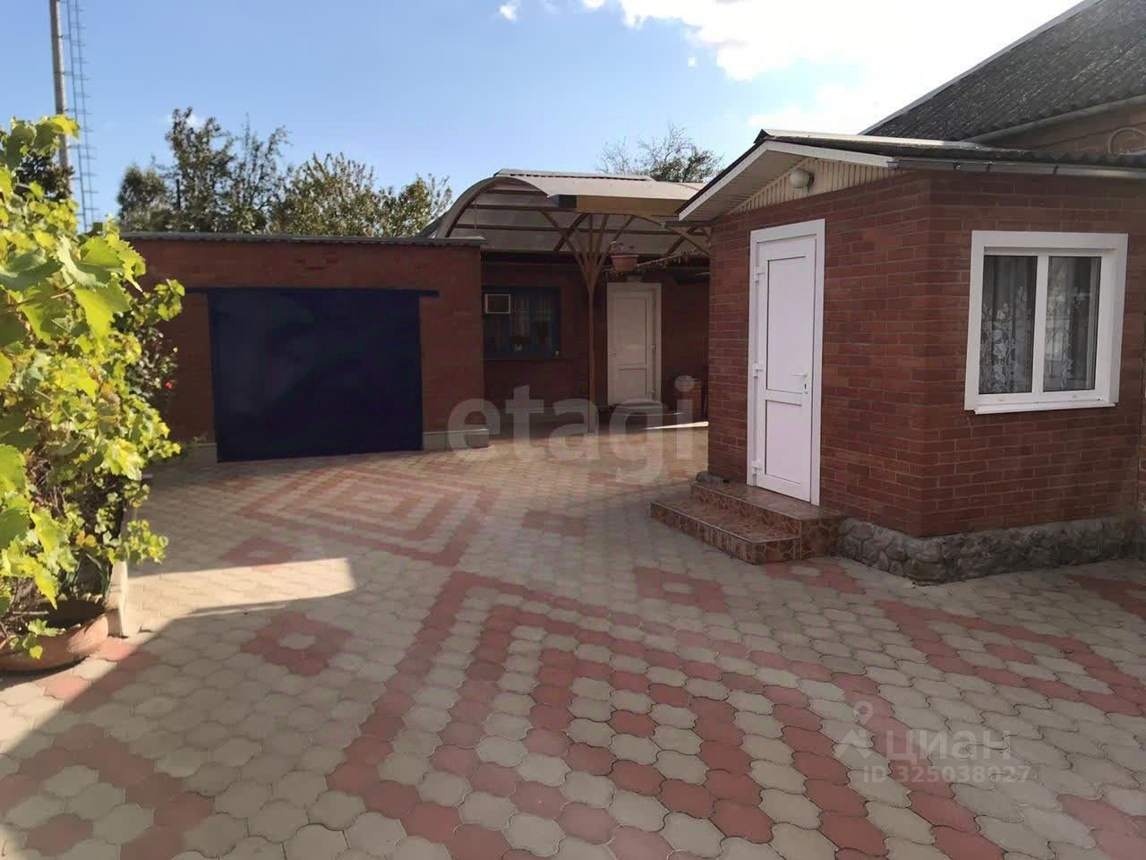 Дом из кирпича. Благоустроенная придомовая территория площадью 200 м² вымощена плиткой и включает зону для отдыха под навесом и летний душ. Во дворе дома есть гараж, оборудованный смотровой ямой, и хозяйственные постройки.