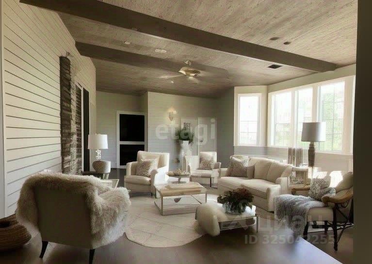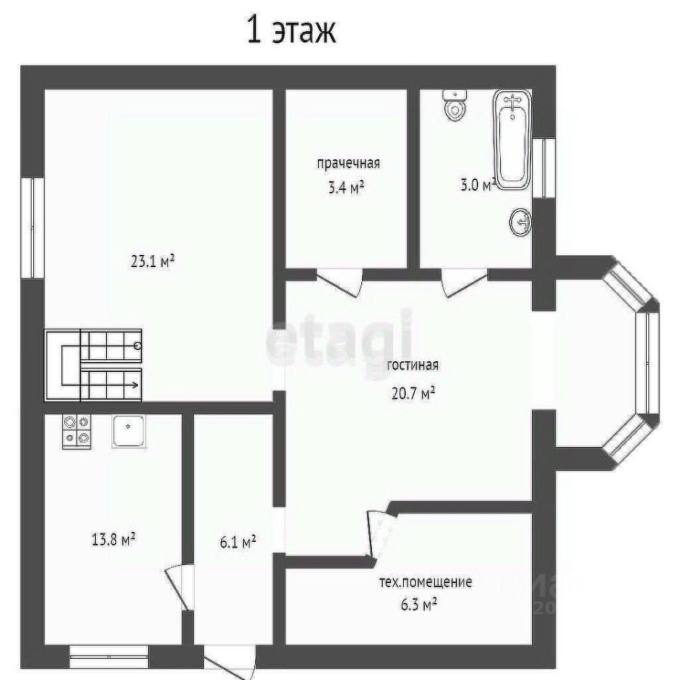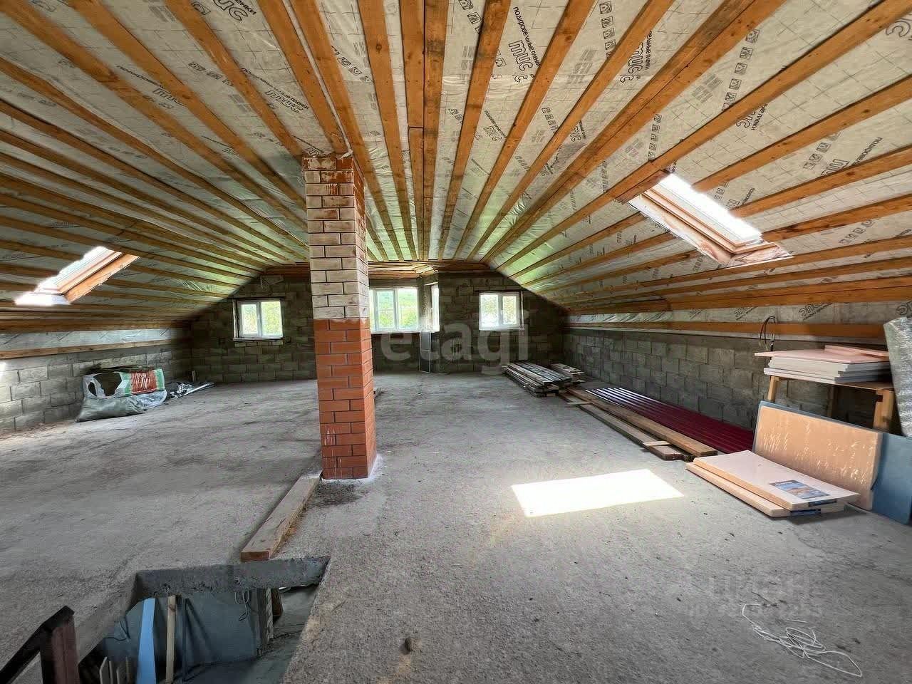 Дом состоит из двух этажей, на первом этаже кухня-гостиная и 2 комнаты, на втором этаже большая просторная комната, которую можно распланировать по своему усмотрению.