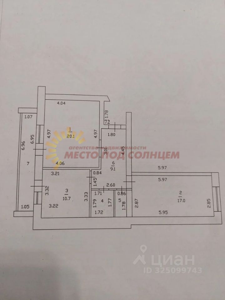 Общая площадь квартиры 68.9 кв.м., кухня площадью 10.7 кв.м., раздельный санузел.