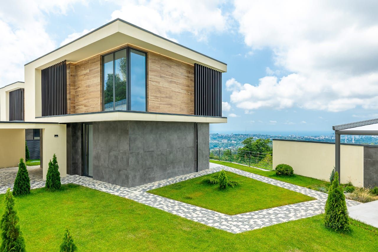 Панорамные виды: Из окон и с террас открываются захватывающие дух виды на море и горы. Уединение и эстетическое удовольствие гарантированы. Полная инфраструктура: Дом окружен всей необходимой инфраструктурой — магазины, школы, кафе, спортивные объекты в шаговой доступности. Удобная транспортная развязка обеспечивает быстрый выезд в город и на основные магистрали. Готовый комфорт: Все центральные коммуникации (электричество, вода, газ, канализация). Не нужно думать о подключениях — просто заезжайте и живите. Роскошь отдыха: На участке выполнен профессиональный ландшафтный дизайн, создающий ощущение парка.