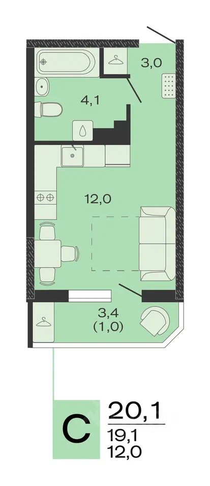 Общая площадь20,1 м2
