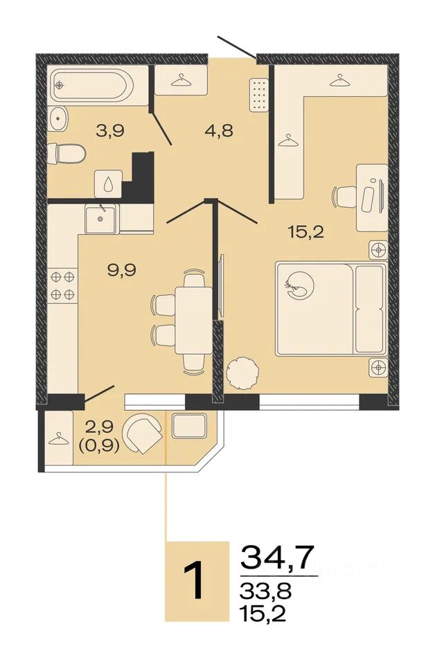 Общая площадь34,7 м2
