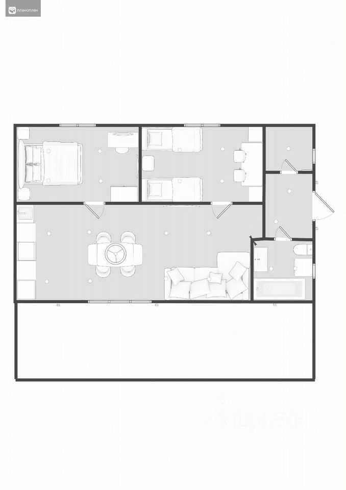 На общей территории большой благоустроенный двор с зоной барбекю, открытым бассейном (с мая по ноябрь) и шезлонгами, детской площадкой с батутом и банным комплексом с купелью, сибирским чаном и беседкой.