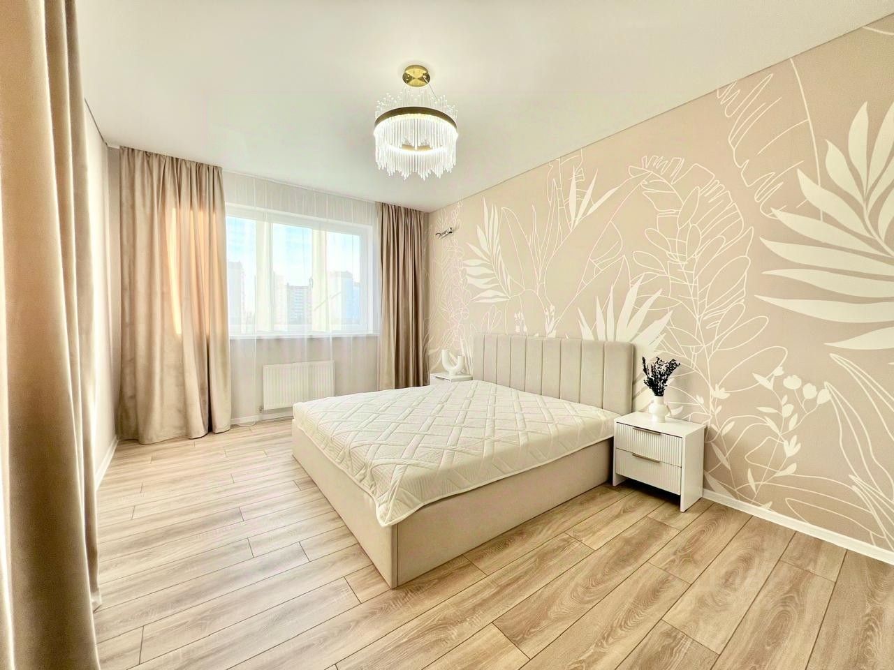 В квартире две изолированные комнаты и большая кухня-гостиная 19 м.кв.. У столовой зоны витражное остекление, что придает особую привлекательность семейным встречам за круглым столом.
