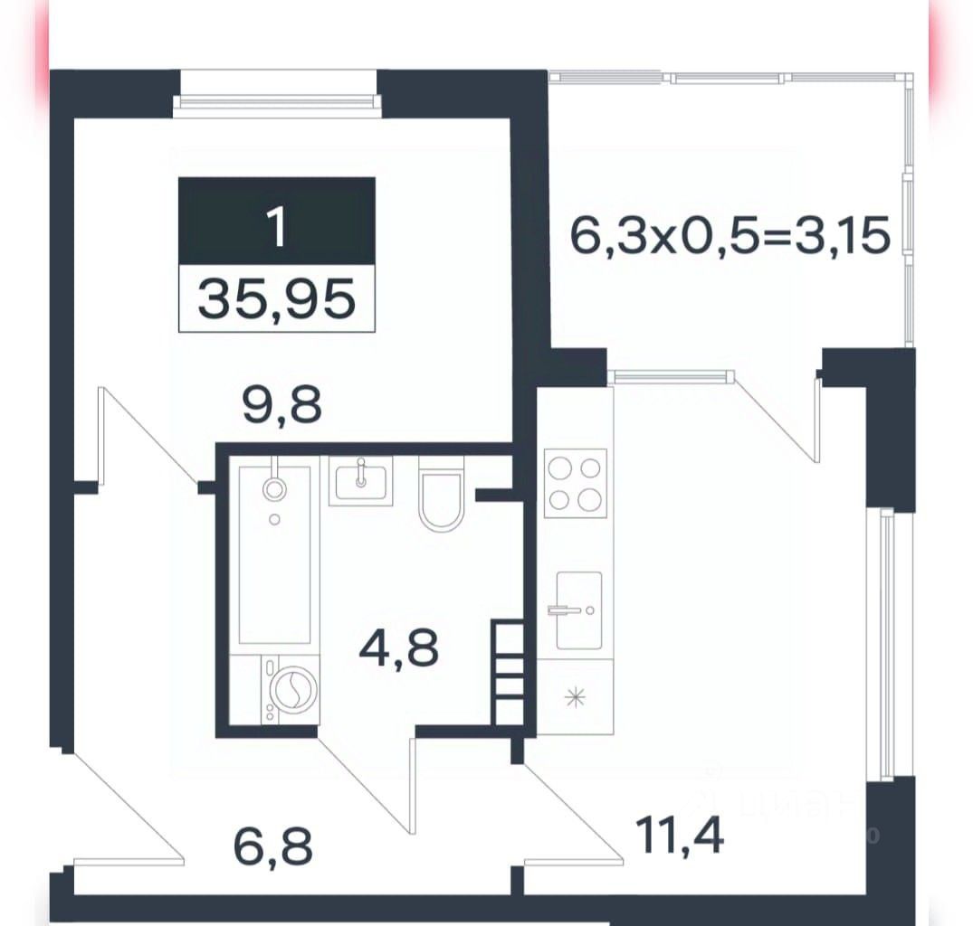 продам 1-к, Имени Федора Елисеева, 9/55 300 000 ₽