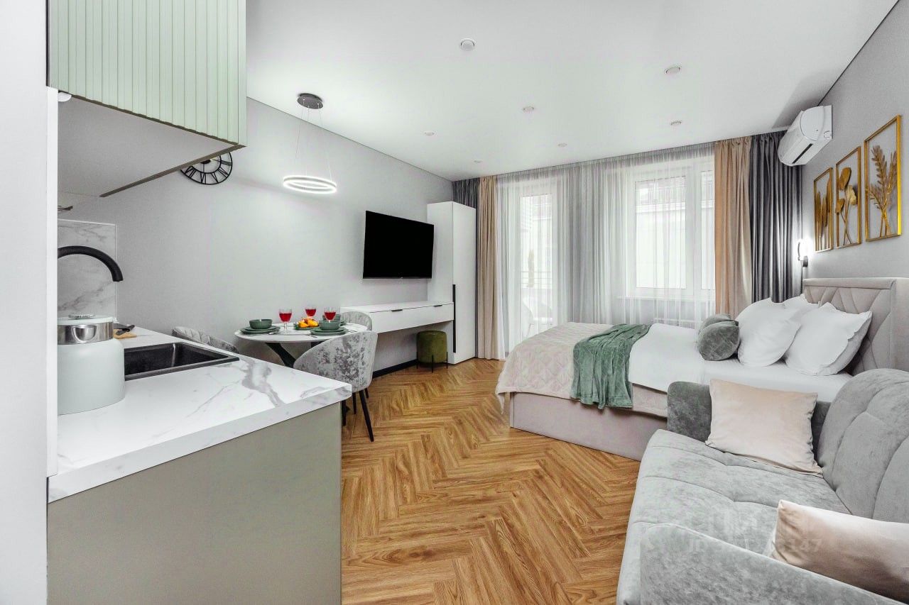 Основные особенности: Размещение до 4 человек: двуспальная кровать с ортопедическим матрасом + раскладной диван-кровать Панорамные окна с видом на море — пространство наполнено естественным светом Абсолютно новая квартира — без посторонних запахов, с современной отделкой и продуманной планировкой Бесконтактное заселение 24/7 — доступ в любое время суток Оснащение: Кухня: холодильник, варочная панель, микроволновая печь, посудомоечная машина, чайник, кофейные принадлежности, полный комплект посуды и столовых приборов Бытовая техника: стиральная машина с функцией сушки, кондиционер (сплит-система), утюг, отпариватель, пылесос Гостиная: Smart TV с доступом к онлайн-кинотеатрам, высокоскоростной Wi-Fi (100 Мбит/с) Ванная комната: душевая кабина с тропическим душем, полотенцесушитель, фен, халаты Постельные принадлежности: постельное бельё из 100% хлопка, пуховые одеяла и подушки разной жёсткости, мягкие полотенца В комплекте Комфорт: — средства гигиены (гель, шампунь, кондиционер, зубные наборы) — одноразовые тапочки — чай, кофе, каши быстрого приготовления — средства для стирки и мытья посуды