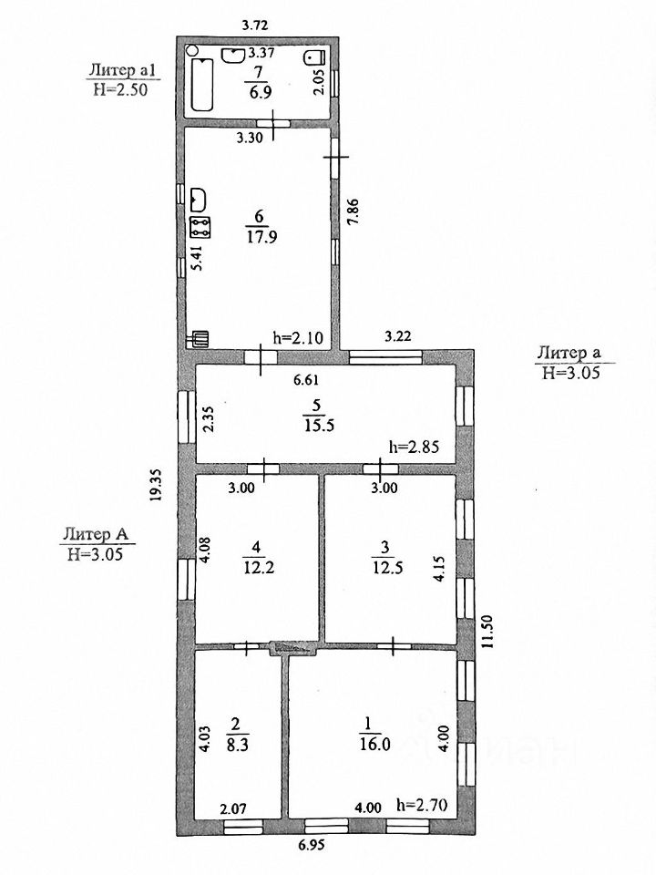 Хутор Дальний, ул. Казачья. Жилой кирпичный дом 1972 г. п, общей площадью 89,3 кв. м., жилой 49. В доме два входа, четыре смежно-изолированные комнаты (16+12,5+12,2+8,3), прихожая/коридр-15,5 кв. м, кухня - 17,9 кв. м, совмещённый санузел - 6,9. Высота потолков в комнатах 2,70 м, в коридоре 2,85. Свет, вода (центральное водоснабжение в доме, скважина на огород), твёрдотопливный котёл. ГАЗ рядом. К дому, над вторым входом/выходом, пристроен навес. На участке есть большая теплица, фруктовый сад, малинник. Во дворе есть помещение готовое для использования по Вашему усмотрению (летняя комната или мастерская, или кладовая и прочее) и недострой одно просторное помещение или два небольших, нет крыши, окон и дверей. Двор бетон. Фасад-17, 19 м. Земельный участок 2 894 кв. м, ЛПХ.