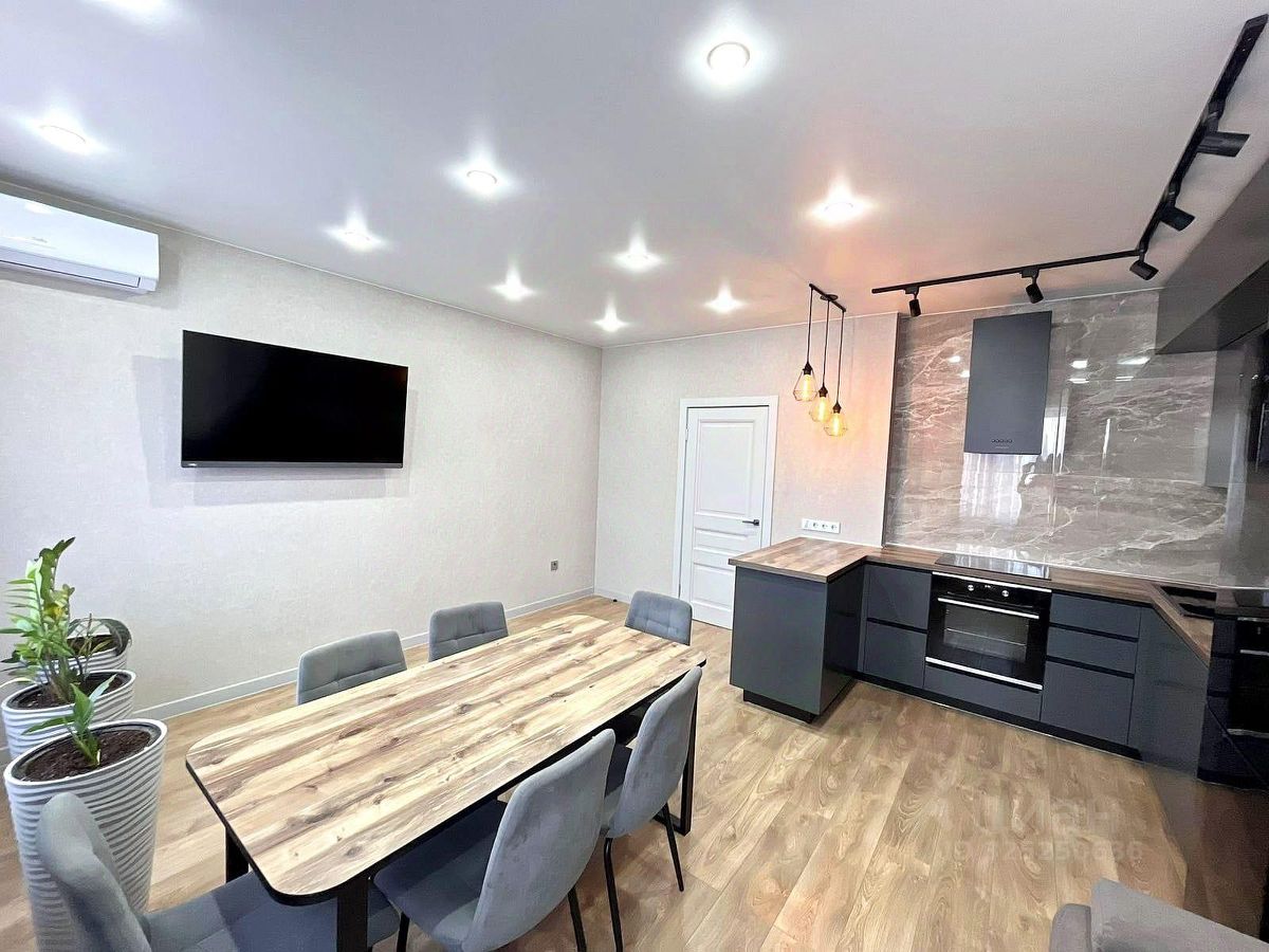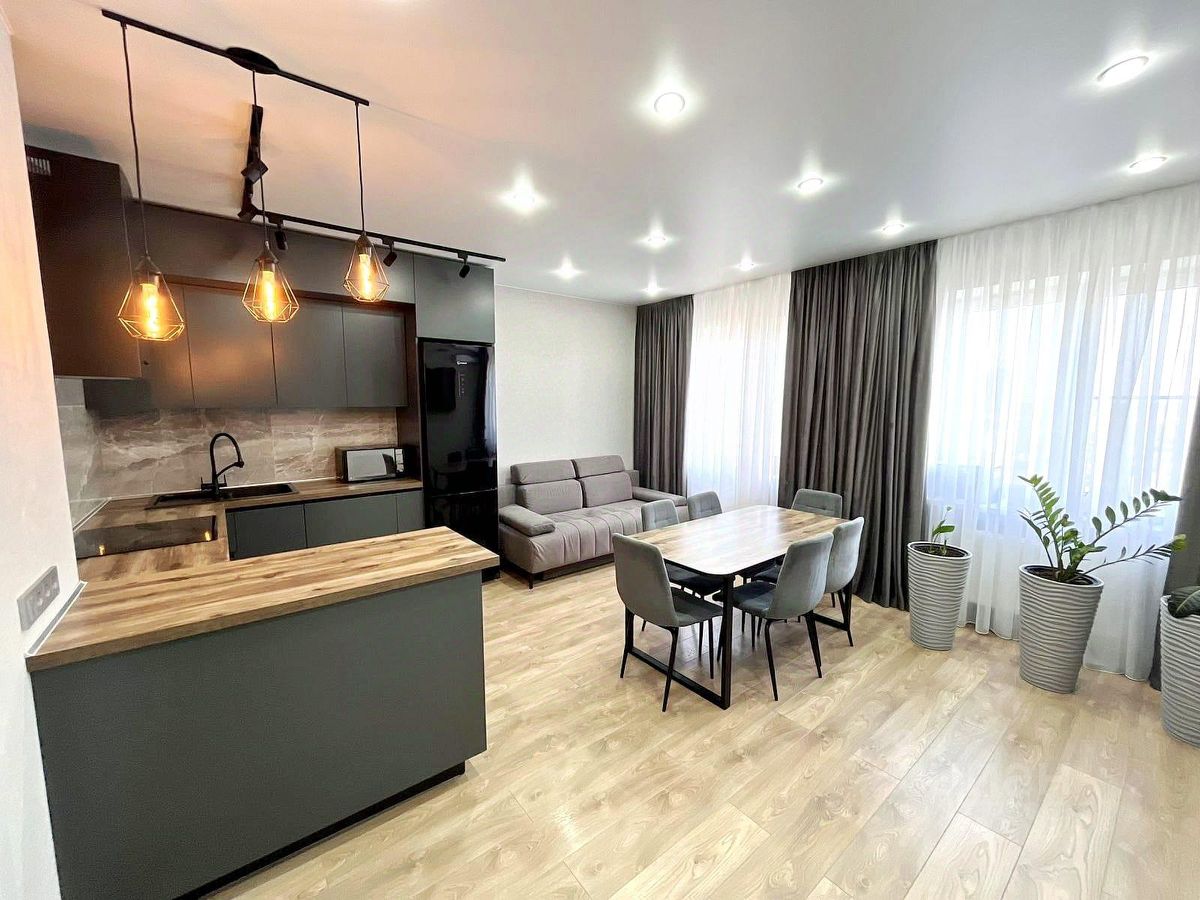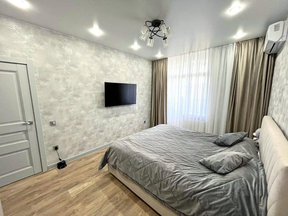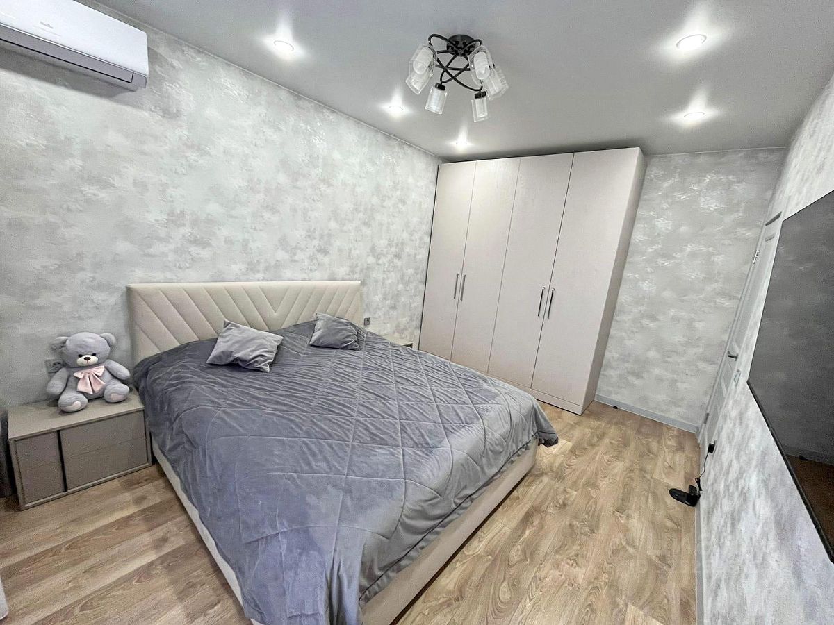 Квартира с многофункциональной планировкой: кухня-гостиная 23 кв.м с двойным остеклением, спальня, большая прихожая с зоной для гардероба, совмещенный санузел. Видовой этаж. Квартира полностью укомплектована мебелью и бытовой техникой.
