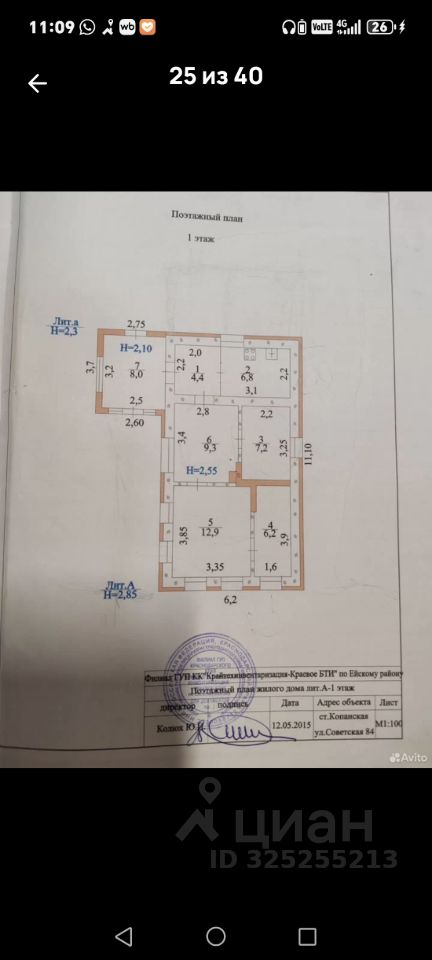 Дом находится, в станице Копанская. Не далеко от центра в 10 минутах ходьбы. В станице есть церковь, детский сад, школа 11-ка,много магазинов, Пятёрочка, VB, Ozon,КБ, 2 строительных магазина, рынок, почта, сбер банк, МФЦ, есть банкомат, больница, поликлиника, частный стоматолог. Ветклиника,Дом Культуры. 2 аптеки. Есть парк, площадки для детей, есть транспортное сообщение с городом Ейск 5 рейсов на Ейск и с Ейска. Так же через станицу Копанская ходит автобус на Краснодар, рейс 1 раз утром и 2 раза вечером из Краснодара через Копанскую на Ейск. (автобусы ходят каждый день). В дом заведён газ, вода. Отопление от газа. На участке есть небольшая банька. В огороде растёт инжир, гранат, персик, малина и.д. Море находится в 25км от станицы, именно море а не залив. До города Ейск 50 км. В доме сделан косметический ремонт, мебель частично остаётся. Все счётчики на газ, воду новые. Реальному покупателю торг у порога... Дом продаётся с связи с переездом по состоянию здоровья. Дом находится по улице Советская