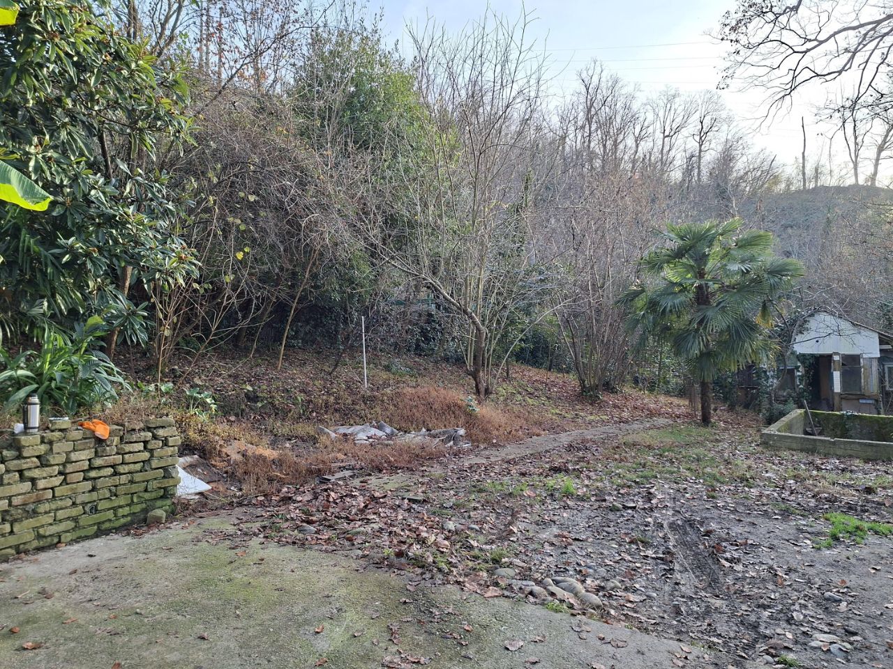 Участок 6.7 соток, блочный двухэтажный дом с гаражом, участок ровный, с плодовыми деревьями и пальмами, есть место для парковки машины, свет, вода, подъезд, уютное и спокойное место, вместе в тем, недалеко от дороги 10-15 минут пешком, район Старая Мацеста, магазины, ярмарка, школа в пешей доступности.