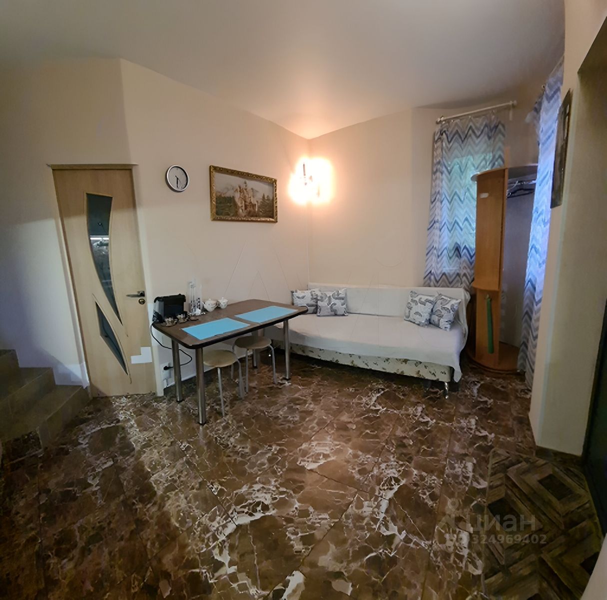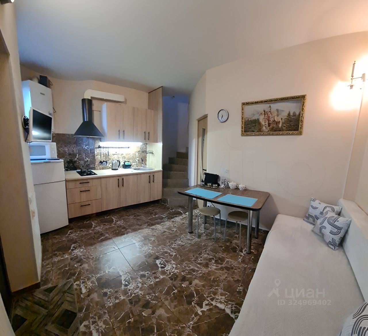 -На первом этаже кухня-гостиная и ванная комната.