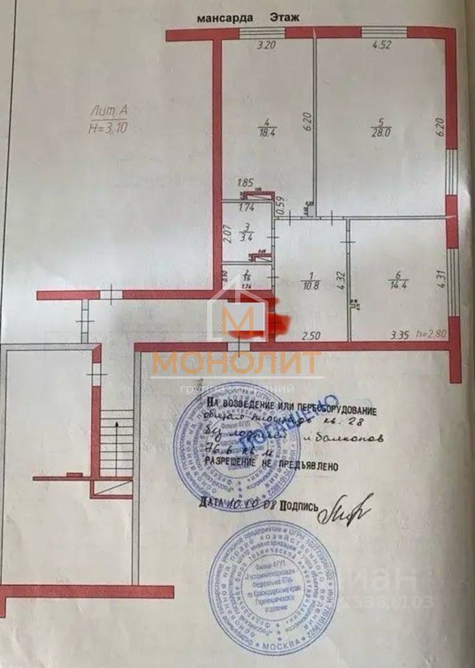 общая площадь 76,6 м