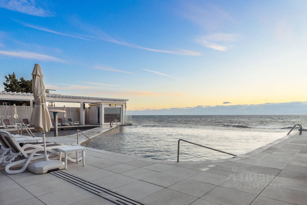 Комплекс класса 4* включает в себя большую закрытую охраняемую территорию с собственным пляжем, оборудованным комфортными шезлонгами и мягкими креслами для вашего отдыха. Для любителей плавания предусмотрены два круглогодичных бассейна-инфинити, один из которых радует гостей потрясающим видом на город Сочи, так как расположен на высоте 25 метров. Панорамная сауна с видом на море предоставит вам возможность насладиться незабываемыми закатами.