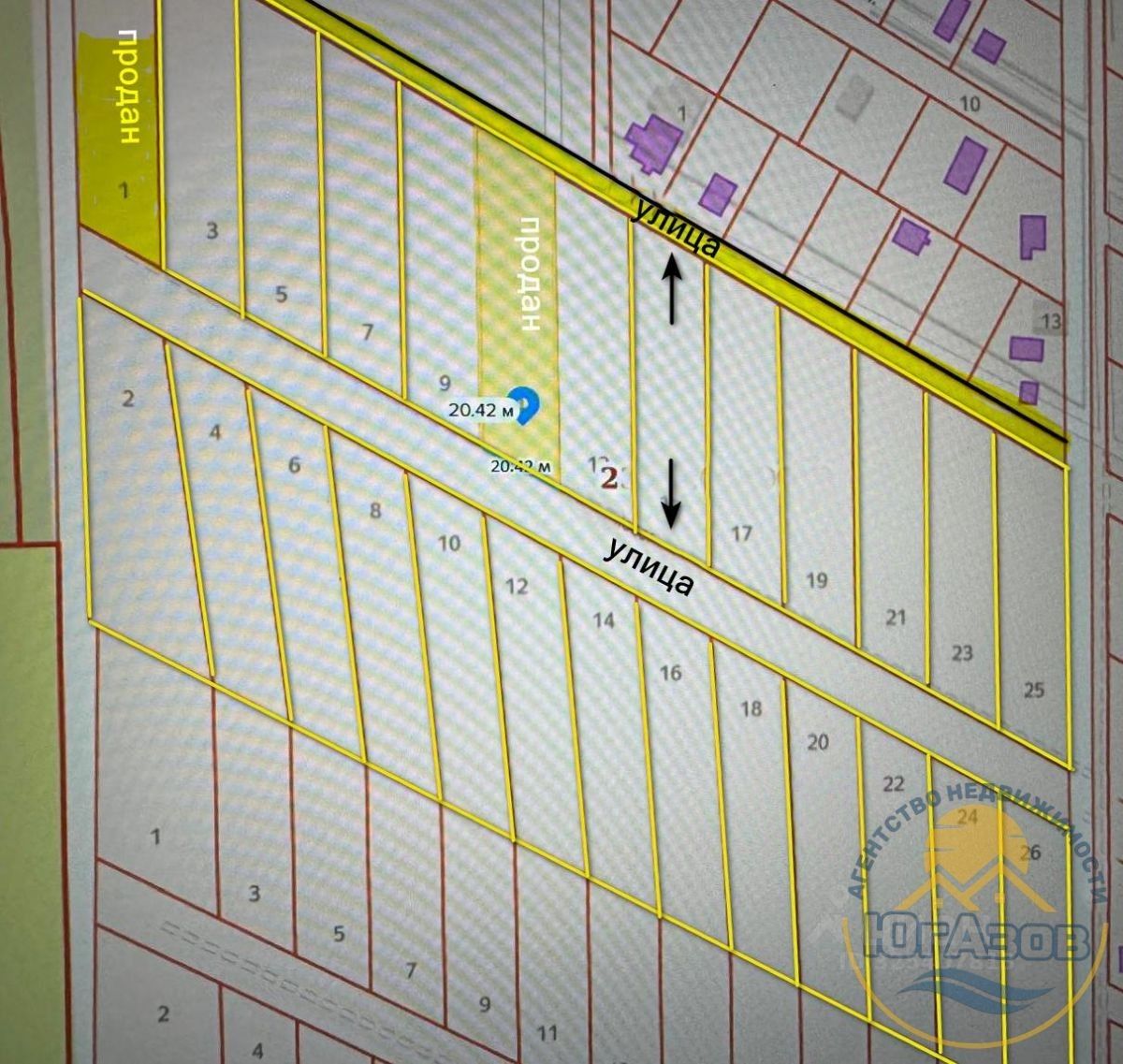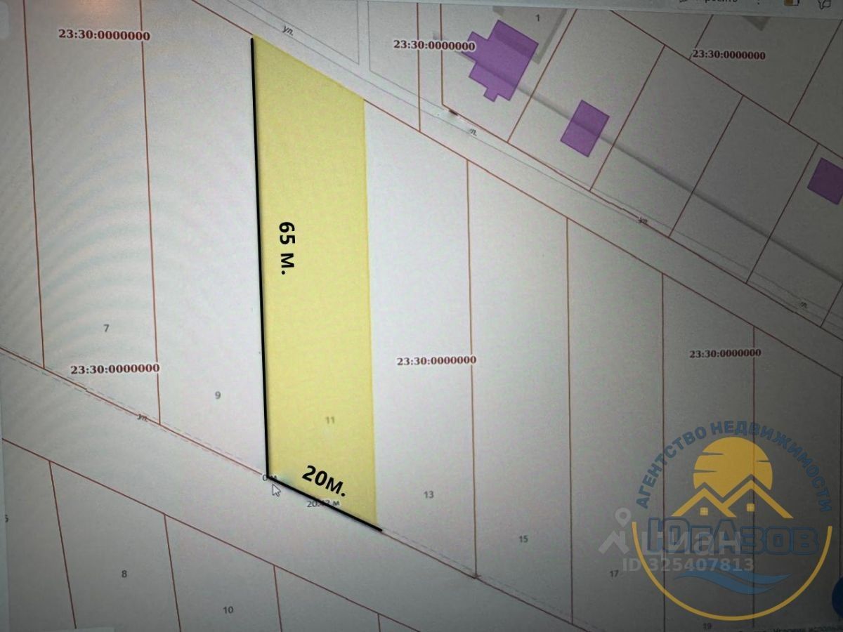 ИЖС, 13 соток, шириной - 20м, глубиной - 65 м. Выходят на 2 улицы - отличная возможность делить на 2