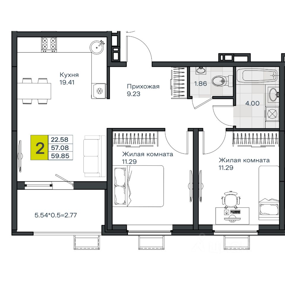 продам 2-к, Имени Профессора Малигонова, 18 079 750 ₽