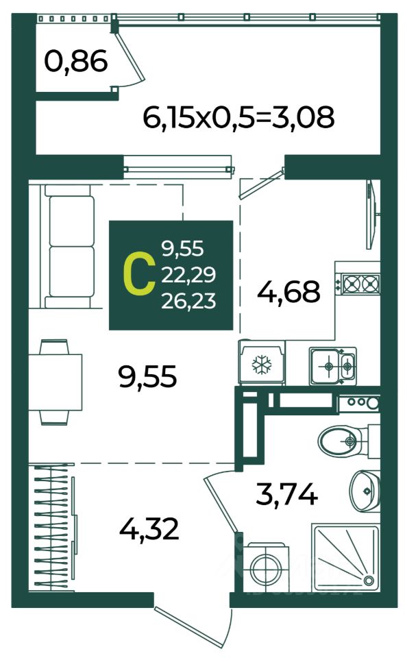 Общая площадь26,23 м2