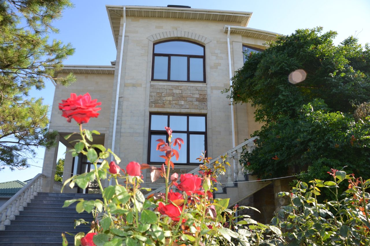 Шикарный особняк у моря в Анапе. Закрытая охраняемая и хорошо благоустроенная территория коттеджного поселка. Дом общей площадью 660кв.м. с качественной отделкой и мебелью под ключ. В доме три жилых этажа + цокольный этаж. 1 этаж - холл, зал - гостиная с камином и выходом на террасу, кухня - столовая, кабинет, санузел, 2 этаж - зал, три спальни, одна из них с гардеробной и санузлом с ванной, на этаже санузел совмещенный с душевой, 3 этаж - две спальные комнаты, санузел совмещенный с ванной, техническое помещение с оборудованием центрального кондиционирования всего дома. Цокольный этаж - сауна, большой бассейн, комната отдыха, санузел, техническое помещение, бильярдная, винный погреб!