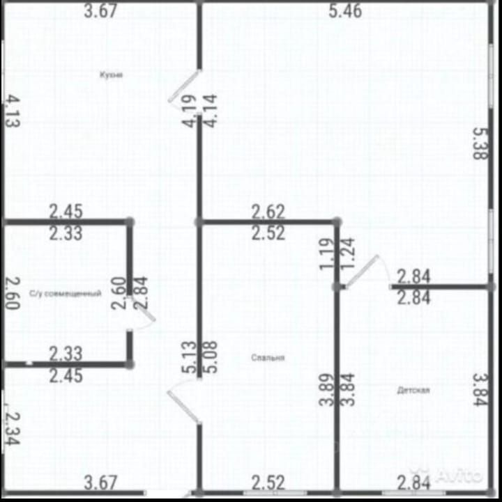 Планировка: прихожая, гостиная 24кв.м., кухня, две изолированные спальные комнаты, санузел совмещенный с душевой.