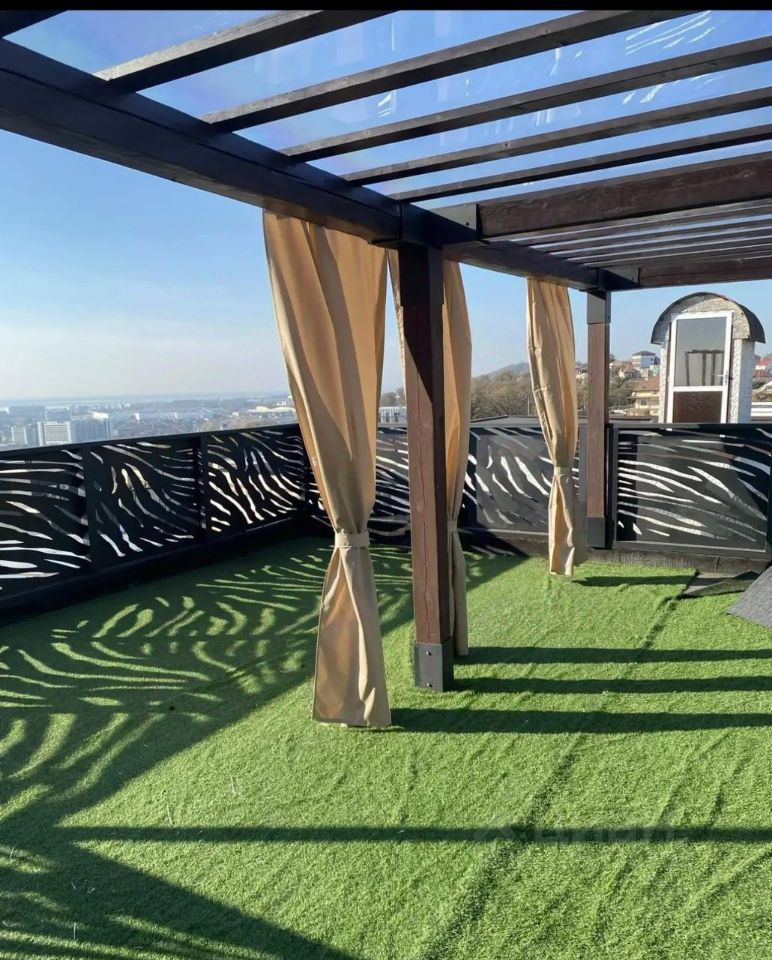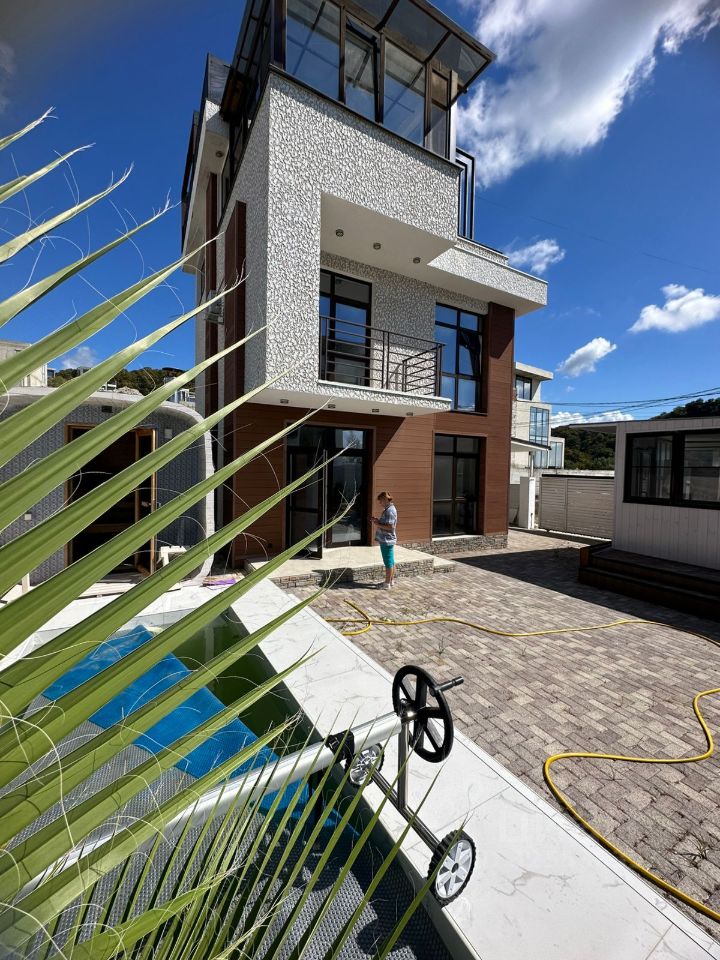 Подходит для гостей до 10 человек. На территории расположены : дом (для 8 чел.) отдельный гостевой дом ( кабинет ) (для 2 чел.). Сдаются вместе, так как санузел находится в основном доме. Планировка 1 этаж: гостиная , кухня , санузел фото: 2,3,4,5. 2 этаж: Три комфортные спальни ( размер кроватей 180,180, 90/90) с испанскими матрасами, санузел . фото: 6,7,8,10. 3 этаж: Мастер-спальня ( размер кровати 180)с террасой и джакузи! фото: 9,11. 4 этаж: частично открытая крыша с зоной отдыха и видом на море и Сириус! фото: 14 На территории : подогреваемый бассейн Русская баня Кабинет с видом на сад (идеально для workation) фото: 12,13 Закрытая парковка на 2 авто Дом для некурящих. На территории есть выделенное место для курения. Для сохранения атмосферы спокойствия запрещены шумные вечеринки и мероприятия. Цена указана посуточно. На длительные сроки — специальные условия! Пишите, звоните!