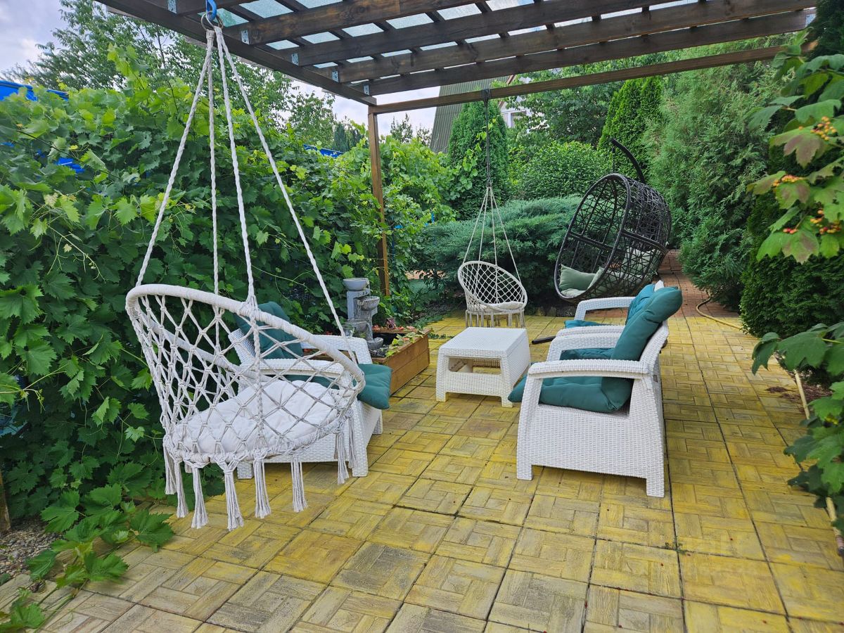 Участок ухожен, с вечнозелёными насаждениями и декоративными камнями. Есть баня, сауна , солевая комната возле бассейна, которые станут отличным местом для отдыха. Для любителей природы предусмотрены зоны для барбекю и беседки.Огромная пергола и подвесные качели у фонтана станут вашим одним из любимых мест Гараж огромный на 4 машины. Есть 380Вт, так как в гараже была мастерская. Ворота открываются автоматически, с пульта.