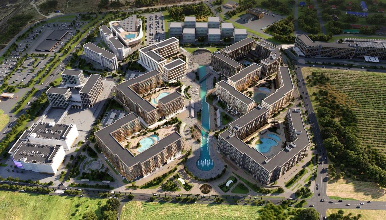 Площадь комплексной застройки 32 га. Самый большой крытый аквапарк на побережье, собственная набережная, SPA, банный комплекс, конференц-холл на территории курорта.