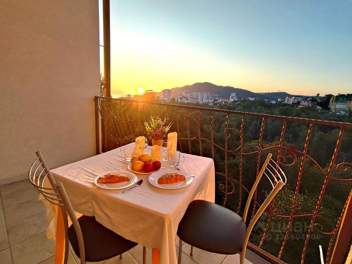 Квартира с видом на лесопарк, горы и море в Центральном Сочи, ул. Санаторная, 46. 4 этаж (лифт), по виду из окна - высота примерно как с 7-8 этажа. Квартира в ЖК ''Романовский''. Дом расположен рядом с лесопарковой зоной. Прямо у дома остановка общественного транспорта (6 и 23 автобусы). Поблизости супермаркет Магнит, аптеки, магазин на территории ЖК, а также кофейня. На придомовой территории - места для парковки авто. Расположение хорошо тем, что дом находится в тихом спокойном месте в окружении зелени и в то же время просто и быстро доехать до самого центра, где скопление пробок на дорогах, и также легко выехать на Дублёр Курортного проспекта, чтобы быстро добраться в любой район города или в Адлер, есть возможность пешком ходить к морю и рядом есть все необходимые магазины.