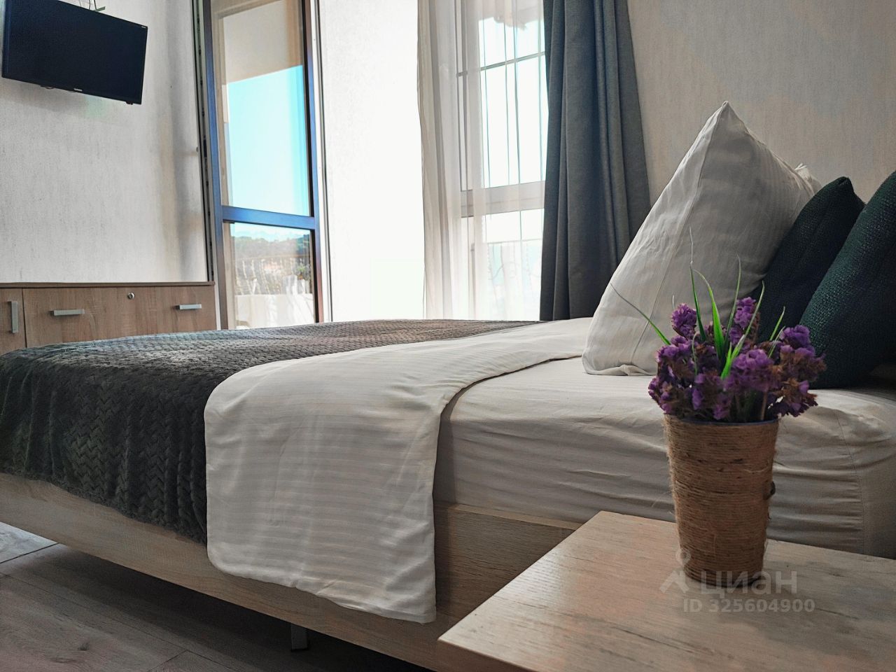Квартира с видом на лесопарк, горы и море в Центральном Сочи, ул. Санаторная, 46. 4 этаж (лифт), по виду из окна - высота примерно как с 7-8 этажа. Квартира в ЖК ''Романовский''. Дом расположен рядом с лесопарковой зоной. Прямо у дома остановка общественного транспорта (6 и 23 автобусы). Поблизости супермаркет Магнит, аптеки, магазин на территории ЖК, а также кофейня. На придомовой территории - места для парковки авто. Расположение хорошо тем, что дом находится в тихом спокойном месте в окружении зелени и в то же время просто и быстро доехать до самого центра, где скопление пробок на дорогах, и также легко выехать на Дублёр Курортного проспекта, чтобы быстро добраться в любой район города или в Адлер, есть возможность пешком ходить к морю и рядом есть все необходимые магазины. Остановка прямо возле дома. В квартире есть: холодильник, плита, стиральная машина, кондиционер, микроволновая печь. Посуда, постельное бельё, полотенца. Интернет, WiFi, ТВ. Полноценная 2-спальная кровать с хорошим матрасом, дополнительная раскладушка. Коммунальные платежи оплачиваются дополнительно. При заселении беру гарантийный залог, который возвращаю при выселении. Сдаю на срок не менее 3 месяцев по указанным условиям (на короткий срок менее 3 месяцев сдаю не всегда - нужно обсуждать по телефону).