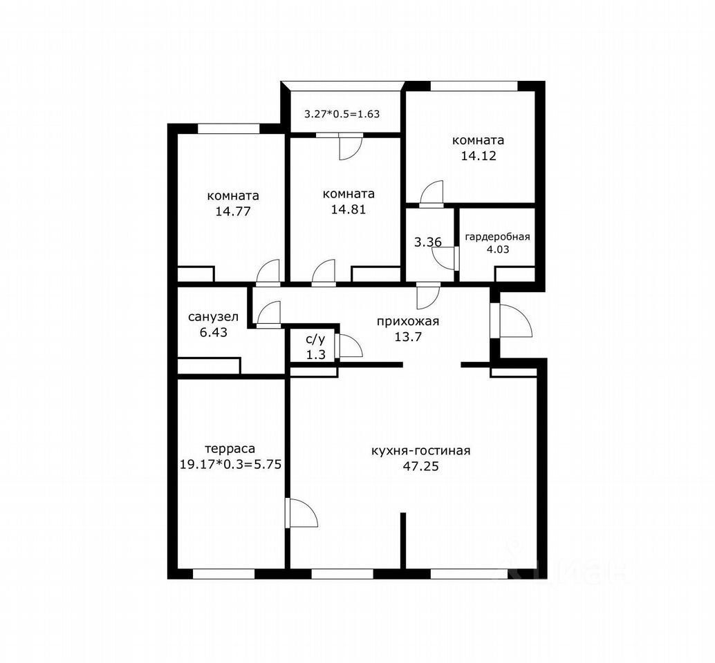 Планировка одна из самых удачных: просторная кухня-гостиная 47 м2 и терраса 19 м2 с видом из окон 16 этажа на Парк Краснодар и Стадион. Три изолированные спальни.