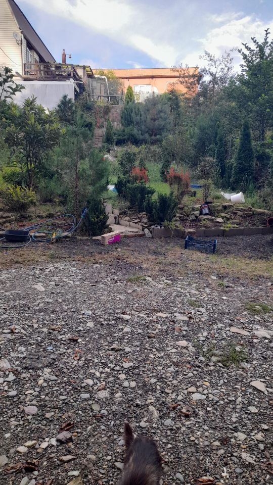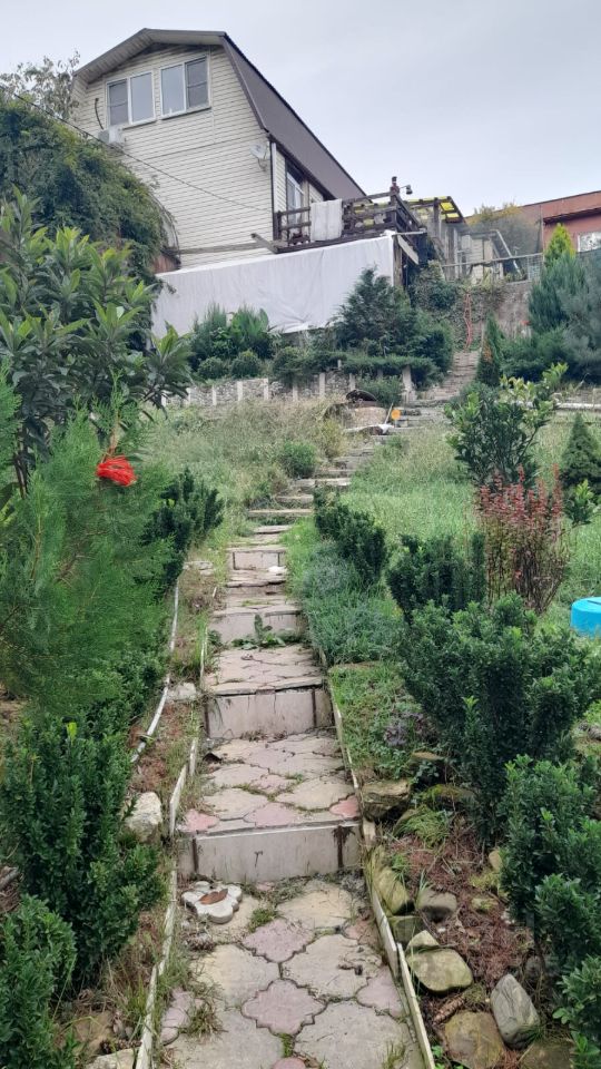 Участок имеет склон, дом в верхней части, подьем к дому дорожка и лестница из брусчатки, есть места для строительства гостевых домиков. Дом из бруса, цоколь бетон, третий этаж мансардный, крыша новая. Окна все новые. Готов к проживанию!