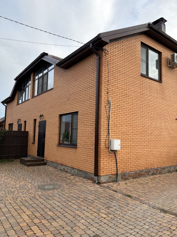 СОБСТВЕННИК Продает часть Дуплекса!!уютный двухэтажный кирпичный дом площадью 132 м². Построен в 2013 году, с косметическим ремонтом. Два с/узла. На первом этаже просторная гостиная, кухня/столовая, кухня оборудована современной техникой. Также на первом этаже небольшой кабинет. На втором этаже расположены три спальни, балкон, с/ узел с душевой кабиной.
