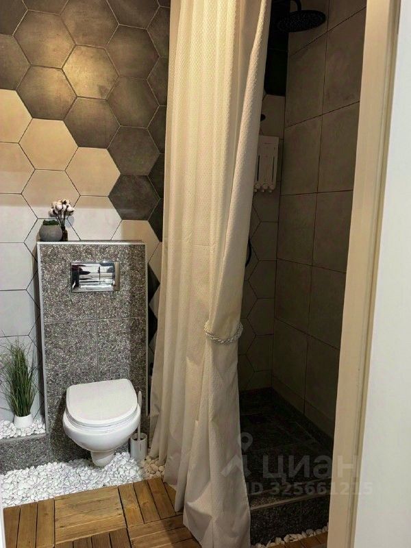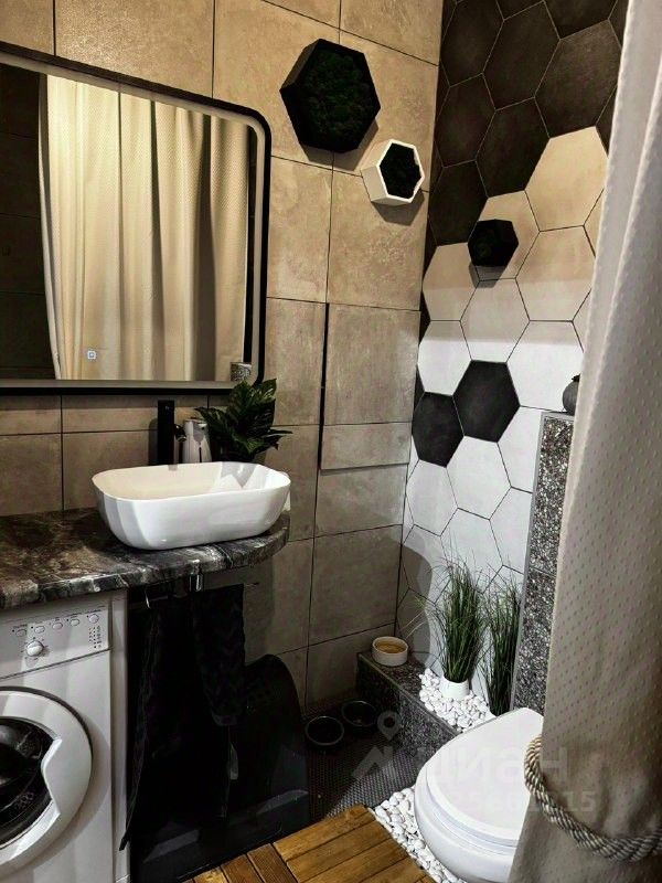 В ванной установлен теплый пол, который создает приятную атмосферу в холодное время года. Санузел совмещенный, выполнен в современном стиле.