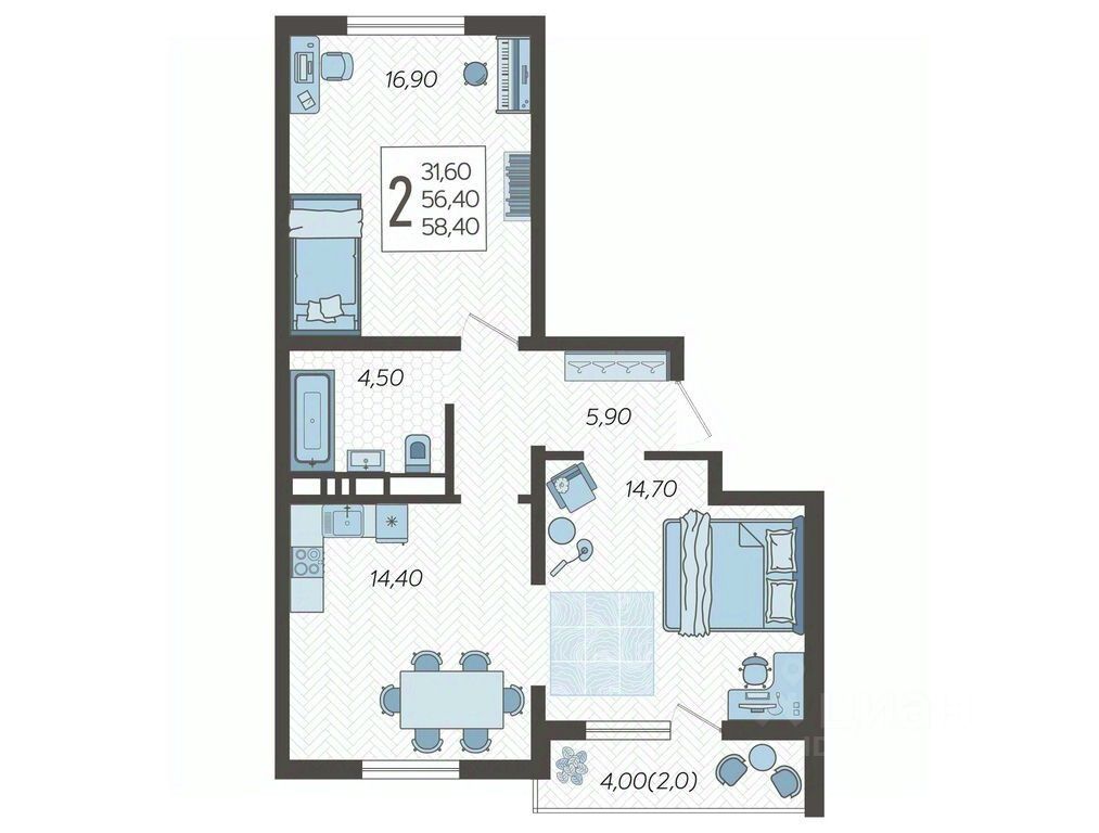 продам 2-к, Горный Квартал ЖК16 912 000 ₽
