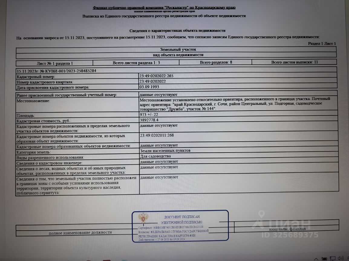 Продаю земельный участок в Центральном районе г. Сочи площадью 973 кв. М. К/Н 23:49:0202022:265 Земли населенных пунктов.