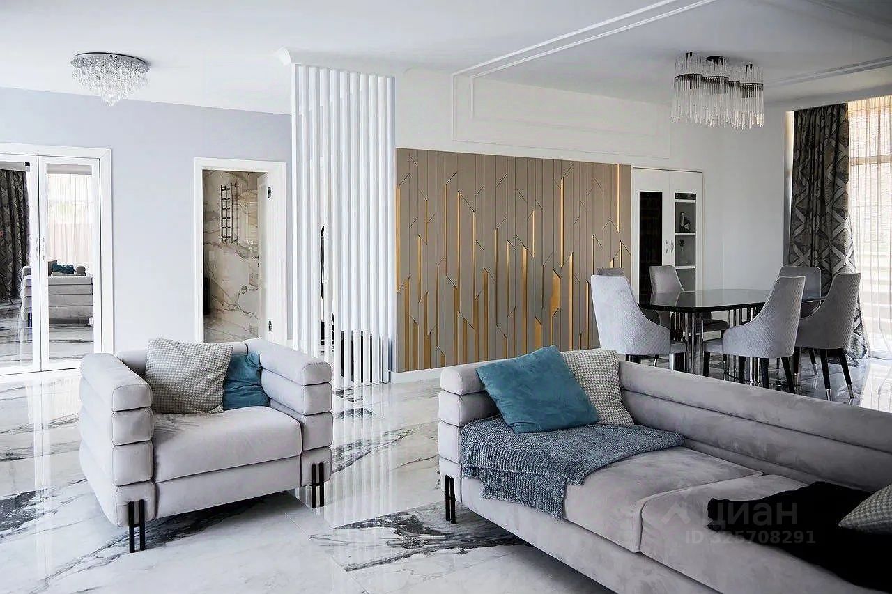 Интерьер коттеджа выполнен в элегантном скандинавском стиле, где светлые тона, натуральные материалы и панорамные окна создают ощущение простора и единения с природой. Система Умный Дом обеспечит вам максимальный комфорт и управление всеми функциями жилья. Удобная и функциональная мебель в гостиной и спальнях, гардеробные комнаты и несколько санузлов продуманы до мелочей.