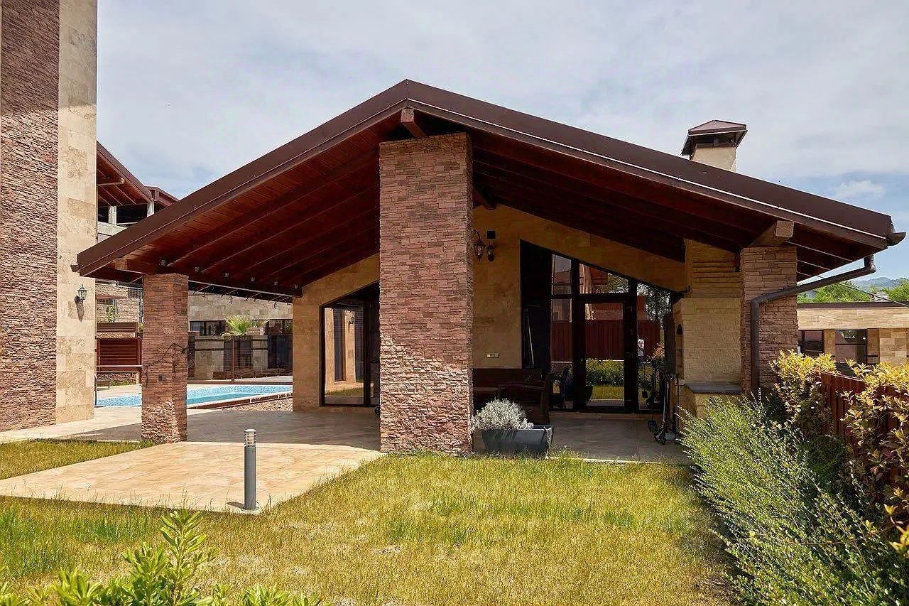 На участке площадью восемь соток расположились два дома: просторный основной и уютный гостевой, а также бассейн с кристально чистой водой и зона барбекю для вечерних встреч под звездным небом.