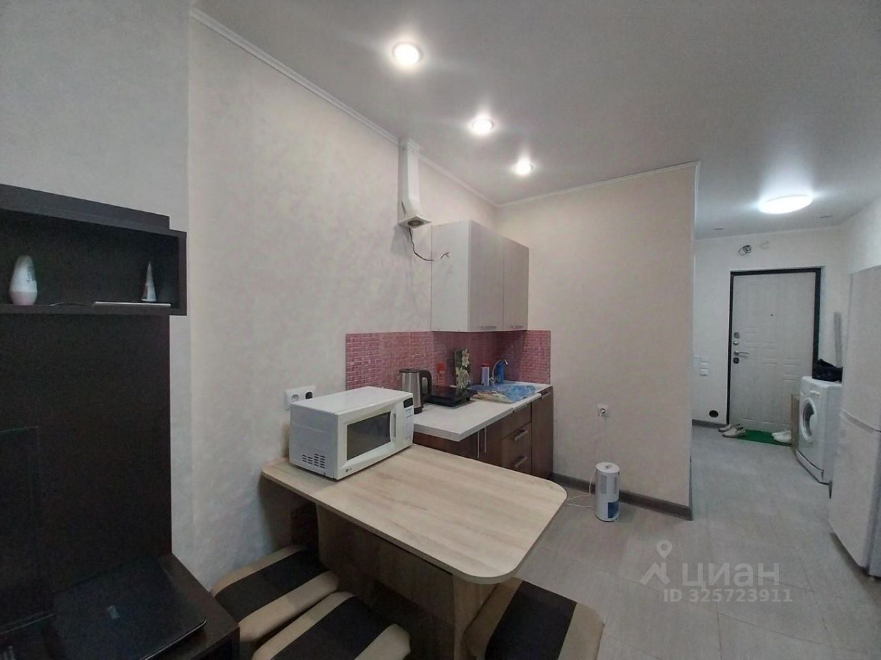 Студия полностью готова к проживанию или сдаче в аренду. Установлена сантехника, выводы под стиральную машину, мебель частично остаётся.