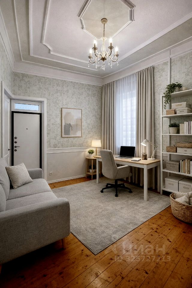 Район: Родина Высота потолков: 4 м Материалы: кленовая лестница, дубовые полы, массивные двери