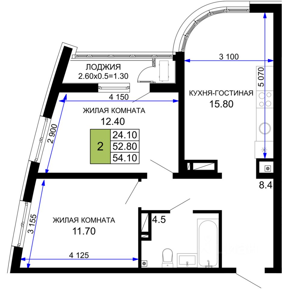 Общая площадь54,1 м2